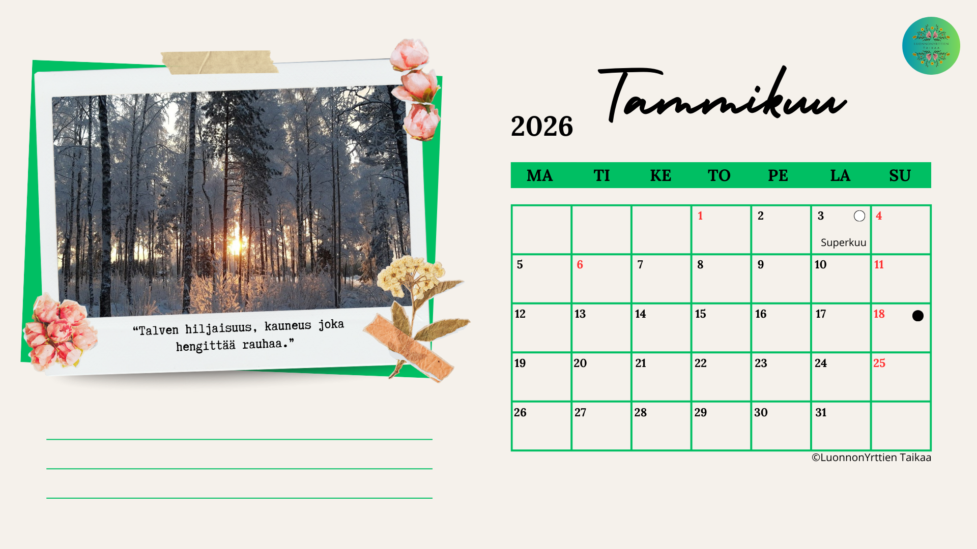 Ahomansikka - Auringonkukka - Granaattiomena - Isotakiainen - Jiaogulan - Joulutähti -Kamomilla - Kaneli - Kanerva - Kehäkukka - Ketohanhikki - Kurjenpolvi - Laventeli - Luonnolliset lannoitteet - Lutukka - Maitohorsma - Mesiangervo - Metsäruusu - Munankuorien hyöty - Mäkikuisma - Oregano - Peltokorte - Piharatamo - Pioni - Piparminttu - Ruiskaunokki - Rohtotädyke - Sahrami - Syreeni - Tulikukka - Vadelma - Vesiheinä -