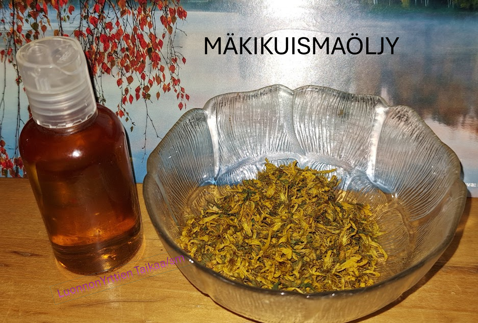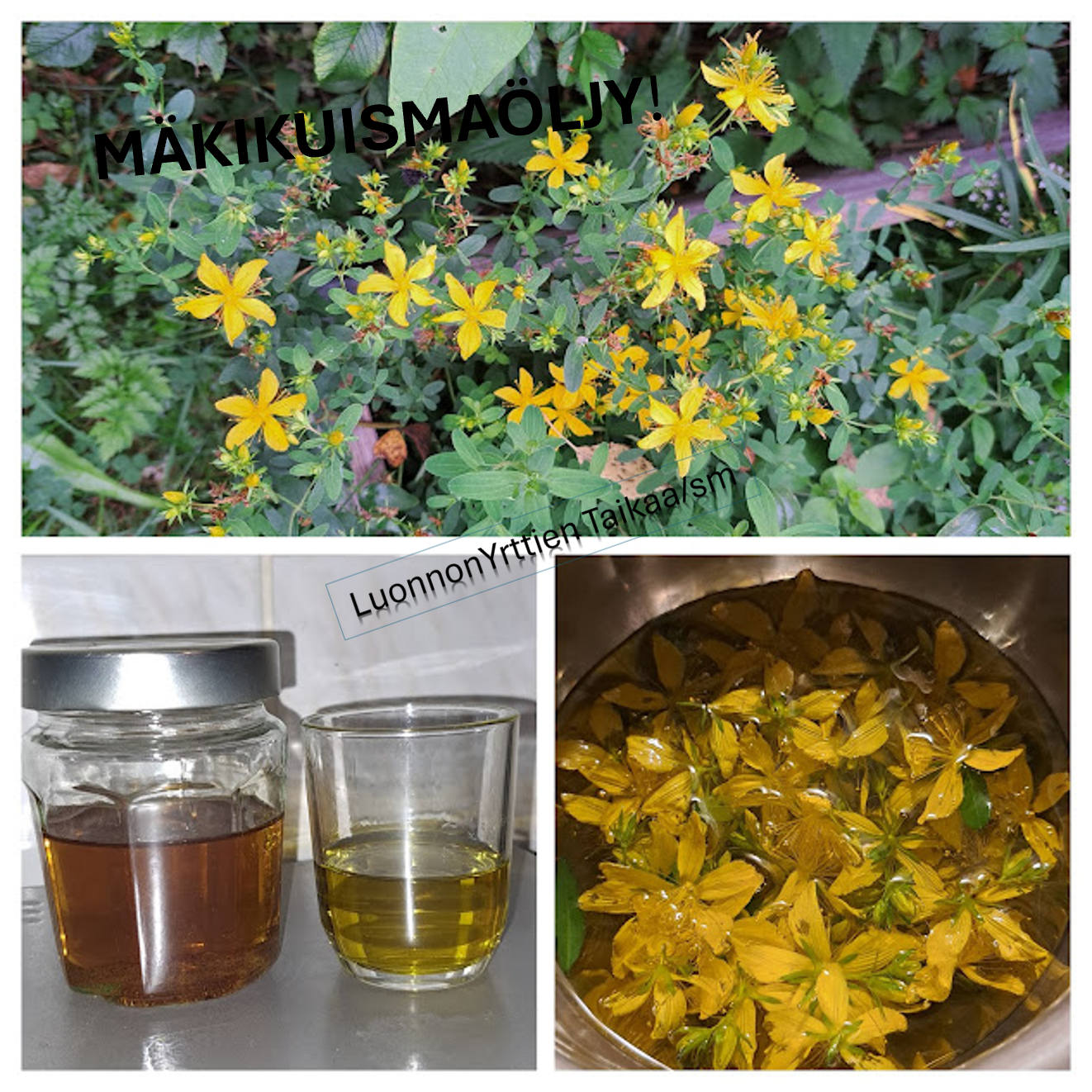 Hyvinvointi- ja yrttikaupoista löytyy valmiinakin mäkikuismaöljyä, mutta jos haluat itse tehdä sitä, lopusta löytyy sinulle ohje miten teet Mäkikuismaöljyn!!