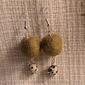 Huopapallo korvakorut numerot 1 - 8. Sterlinghopeoidut koukut, 2mm pallo ja korun pituus 3,5cm. Kaikki pallot vihreän sävyisiä enemmän tai vähemmän. (kuvat hieman vääristää aitoa väriä) Huopapallot 5€/pari. Näitä on vain yhdet parit jokaista väriä.